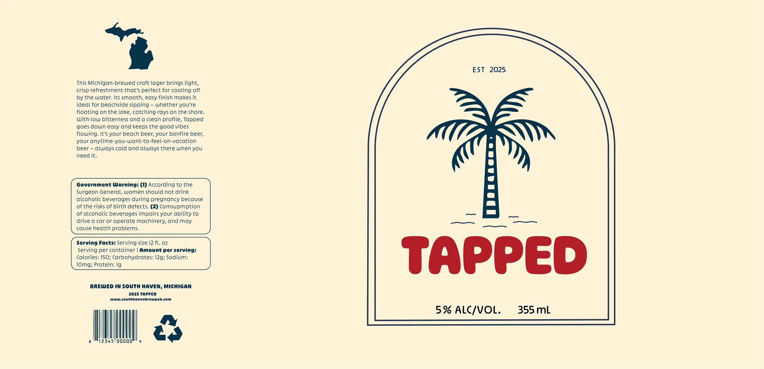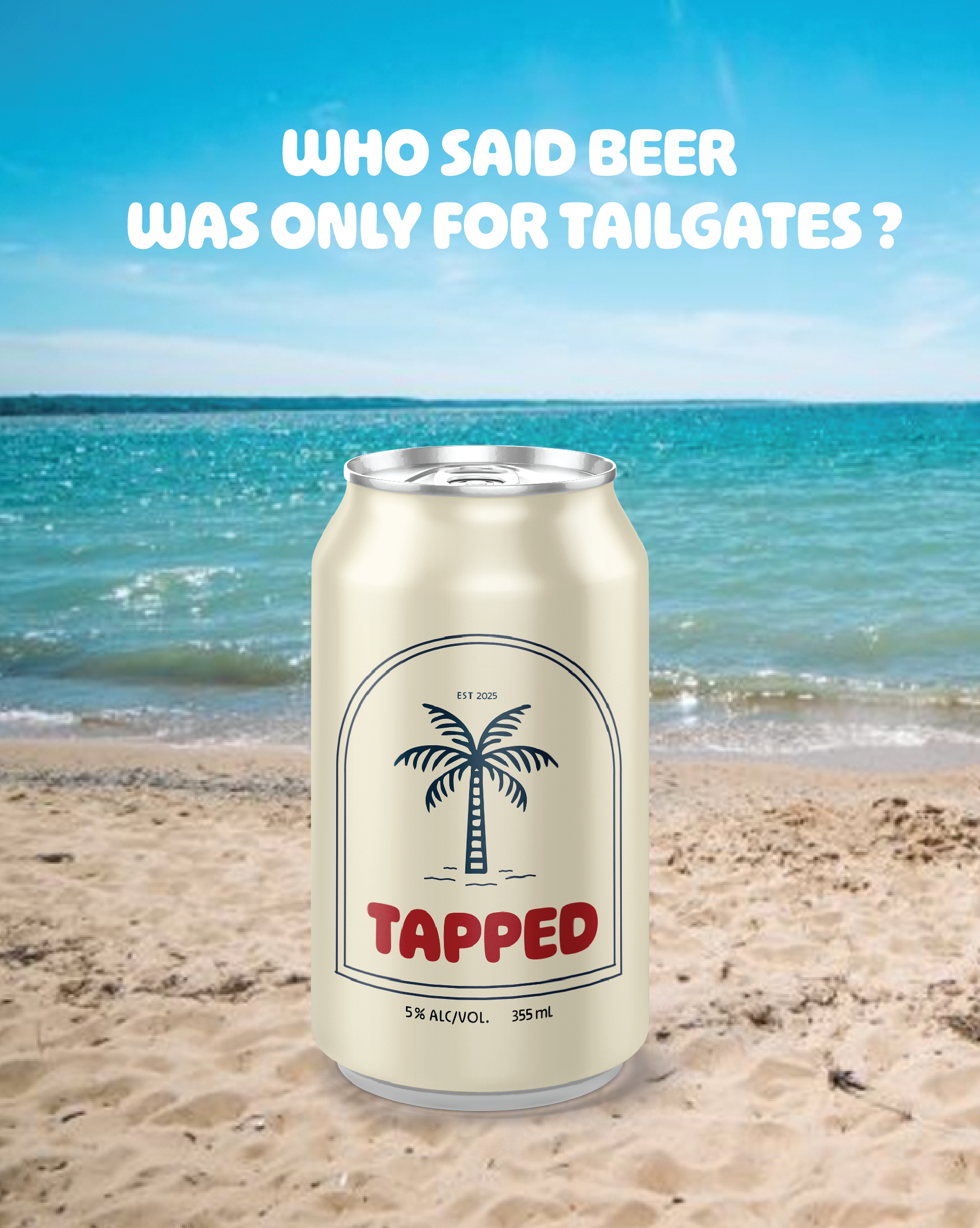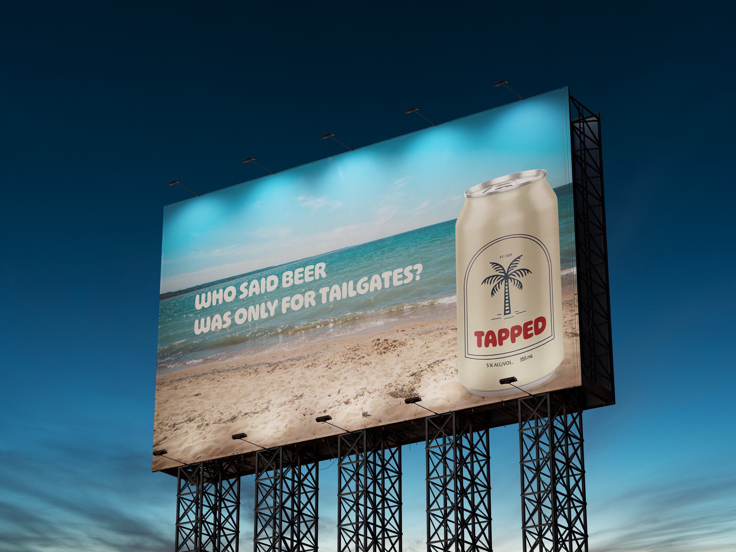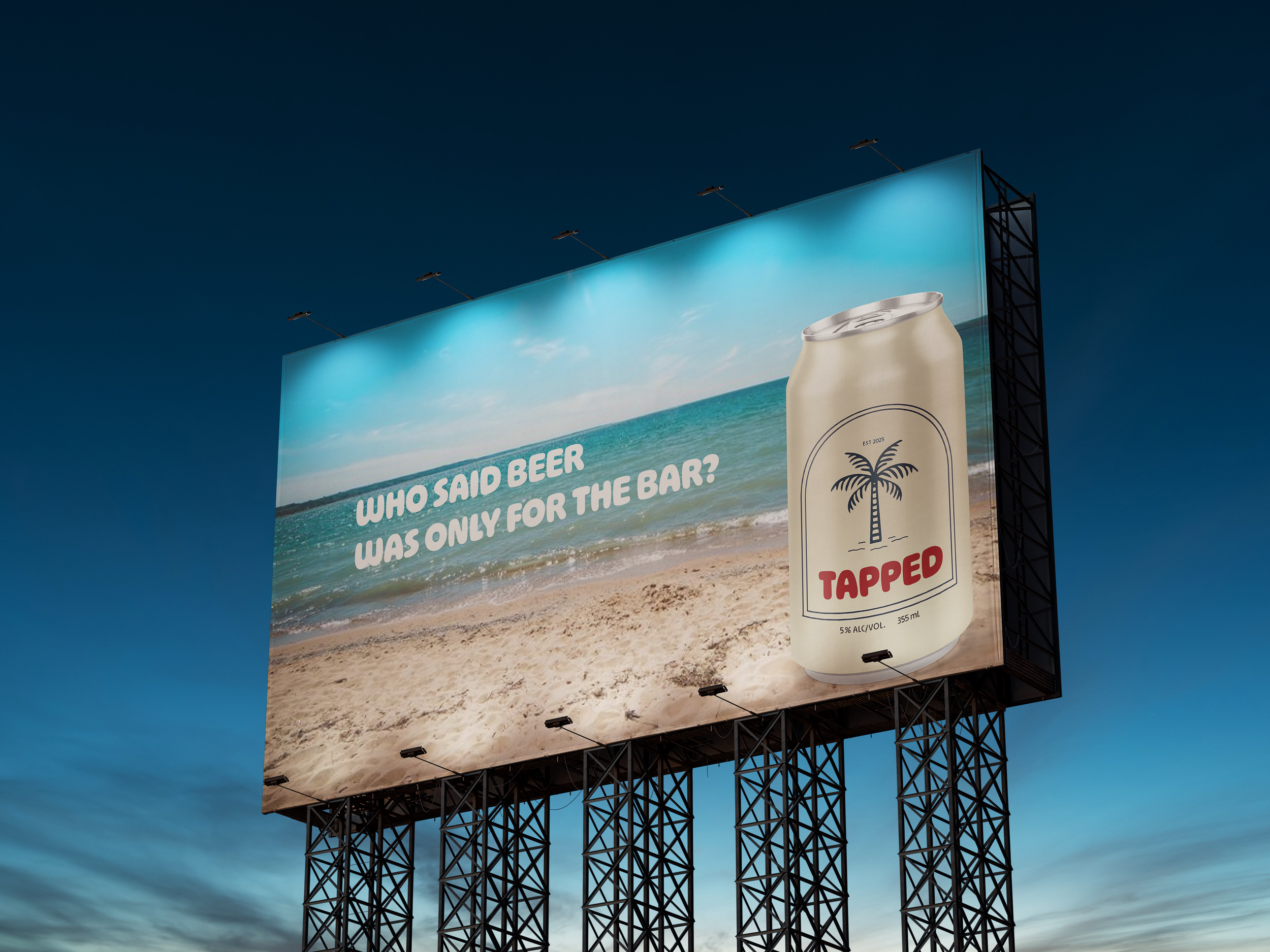 Tapped is a beer made to be enjoyed at the beach. Taking inspiration from more traditional beers to create a calm, nostalgic feel with its aesthetic and color palette.