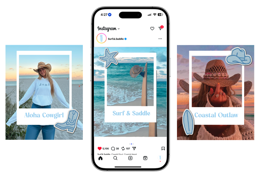 Surf & Saddle is a fashion brand I created based on the coastal cowgirl lifestyle, combining western and beach styles.